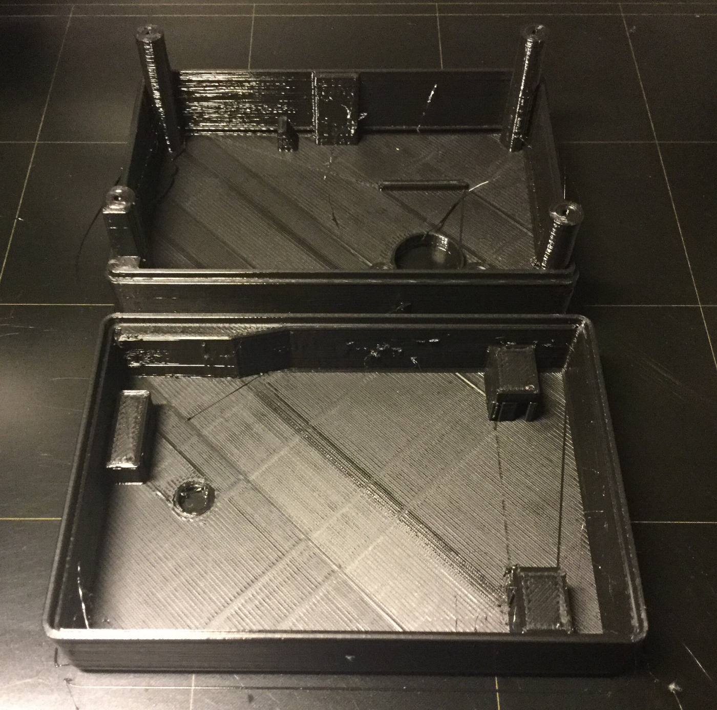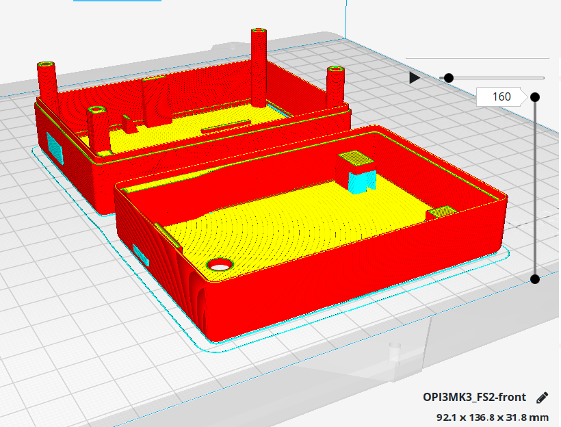 After removing the support and sanding the round columns the first thing is to connect the front and back case together and see that they fit correctly. Usually, they do but PET is a tricky plastic to print and the end termination is a bit rougher than with PLA so it requires some post-production work. As an advantage, this plastic is stronger than PLA, and will stand a crash much better since it’s more elastic and resistant. I would say the best termination and strength balance would be to print this in ABS but I dislike the smokes and the fact that is also very difficult to print at home.