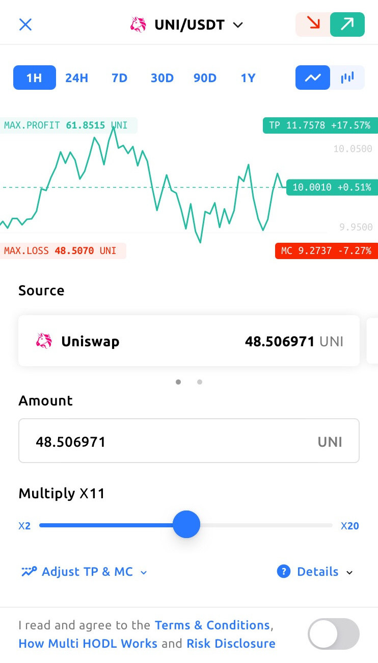 Let’s say I have 48.5 UNI and I choose to make an UP bet this is what happens as default