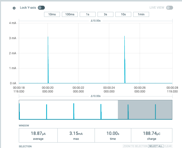 This power profile is of this PCB driving a Sharp 128×128 memory LCD and updating the display every 5 seconds (completely running within the ESP32-C6 ULP). 18.87uA average current from the 5V pin!