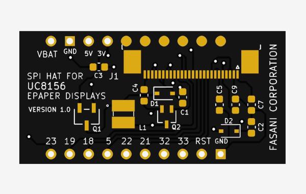 I like also technologies like TFT displays and epapers. On the PlasticLogic and Goodisplay epaper displays, usually the ones that use SPI for communication have a controller inside that already generate the high voltages they need. But the thin surfaces are not enough to place the needed coils and capacitors. To generate high voltages, in silicon, its hard and expensive to implement relatively large inductors and also capacitors so these parts are usually added as external components. That’s why you can see that this epaper HAT has this external “help” to the UC8156 driver inside, without that the high voltages that are usually +15 -15v or more, would not work and you would not see the Eink particles moving up/down.